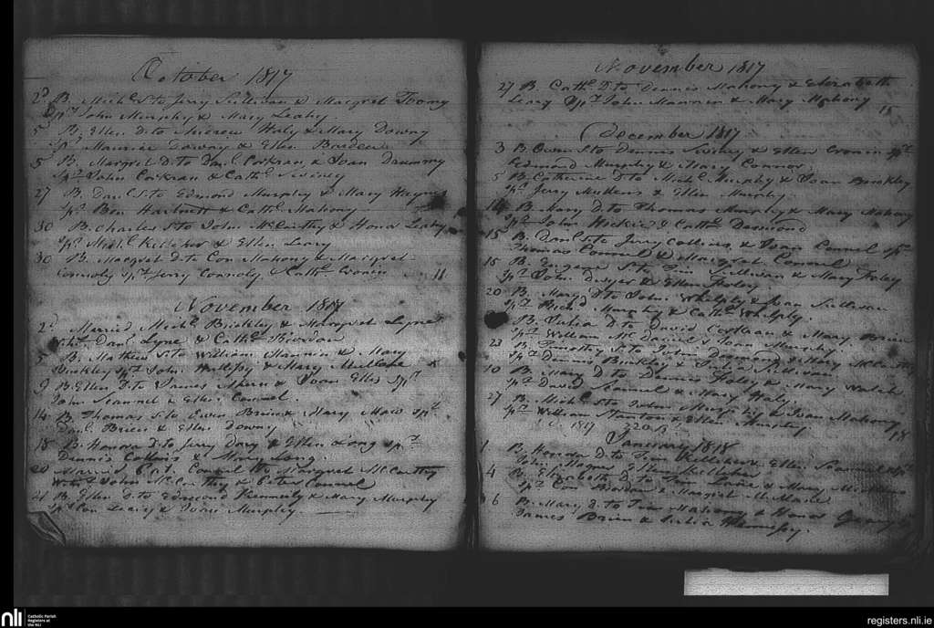 Ovens; County of Cork; Diocese of Cork and Ross. Baptisms, Marriages, Oct. 1817 to Jan. 1818