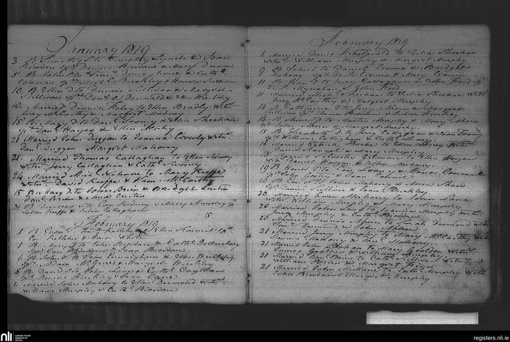 Ovens; County of Cork; Diocese of Cork and Ross. Baptisms, Marriages, Jan. 1819 to Feb. 1819