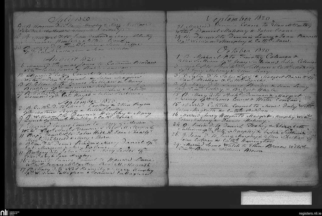 Ovens; County of Cork; Diocese of Cork and Ross. Baptisms, Marriages, July 1820 to Oct. 1820