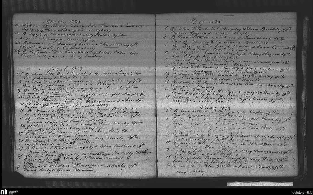 Ovens; County of Cork; Diocese of Cork and Ross. Baptisms, Marriages, Mar. 1823 to June 1823