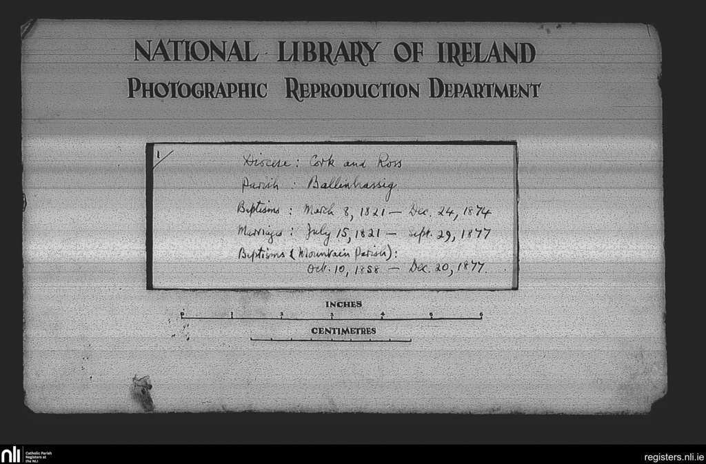 Ovens; County of Cork; Diocese of Cork and Ross. Baptisms, Marriages