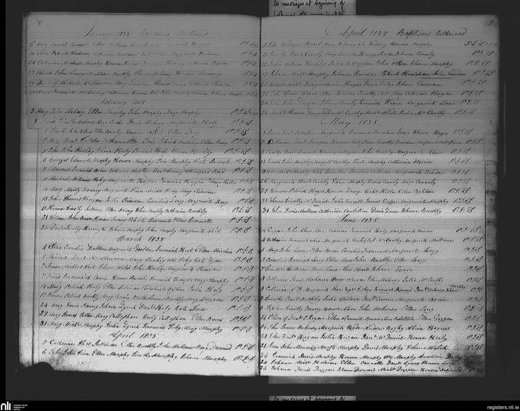 Ovens; County of Cork; Diocese of Cork and Ross. Baptisms, Jan. 1835 to June 1835
