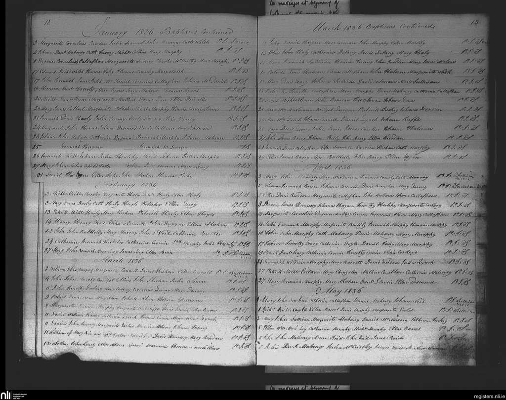 Ovens; County of Cork; Diocese of Cork and Ross. Baptisms, Jan. 1836 to May 1836