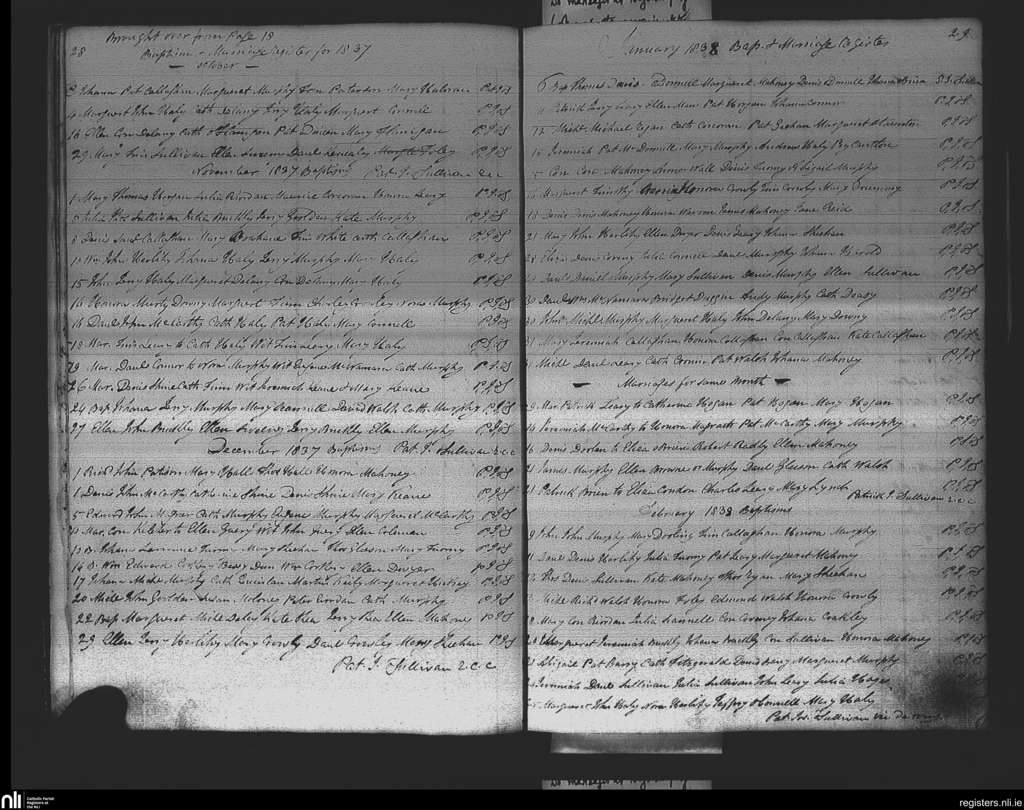 Ovens; County of Cork; Diocese of Cork and Ross. Baptisms, Marriages, Oct. 1837 to Feb. 1838