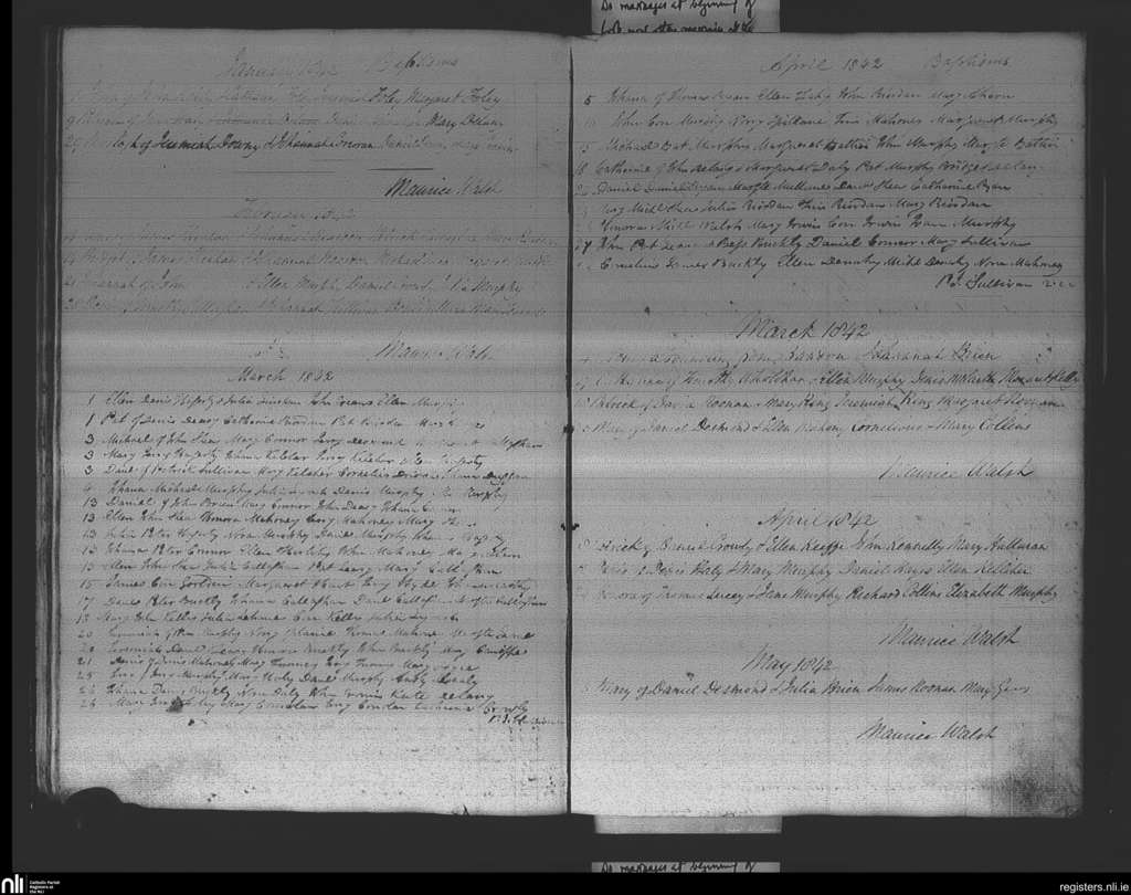 Ovens; County of Cork; Diocese of Cork and Ross. Baptisms, Jan. 1842 to May 1842