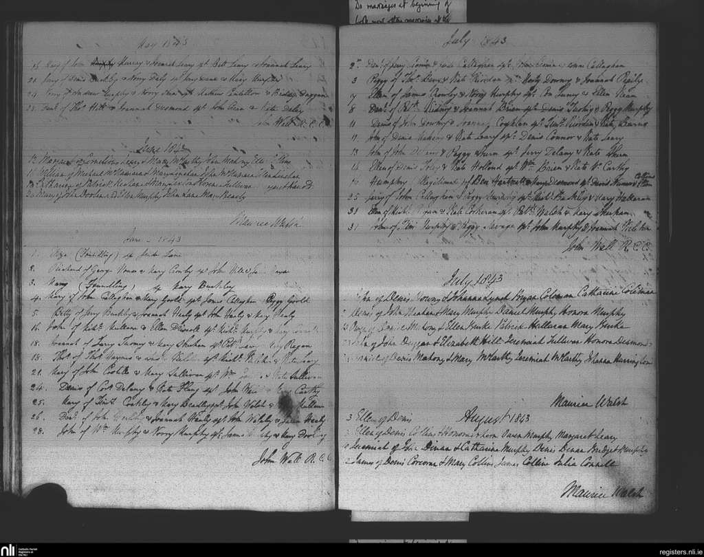Ovens; County of Cork; Diocese of Cork and Ross. Baptisms, May 1843 to Aug. 1843