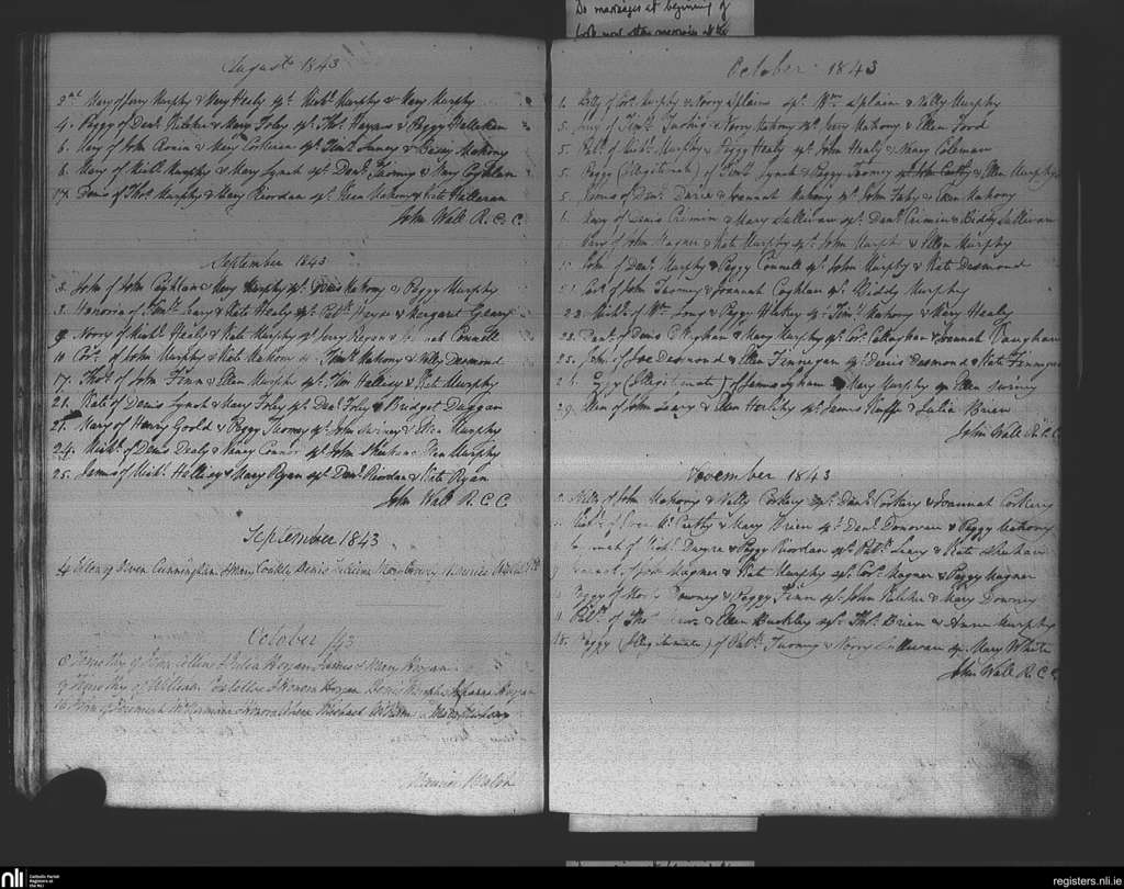 Ovens; County of Cork; Diocese of Cork and Ross. Baptisms, Aug. 1843 to Nov. 1843