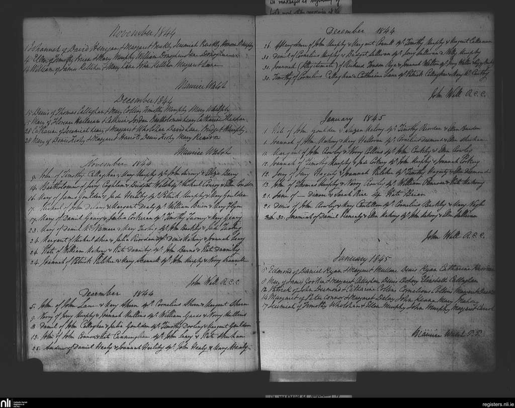 Ovens; County of Cork; Diocese of Cork and Ross. Baptisms, Nov. 1844 to Jan. 1845