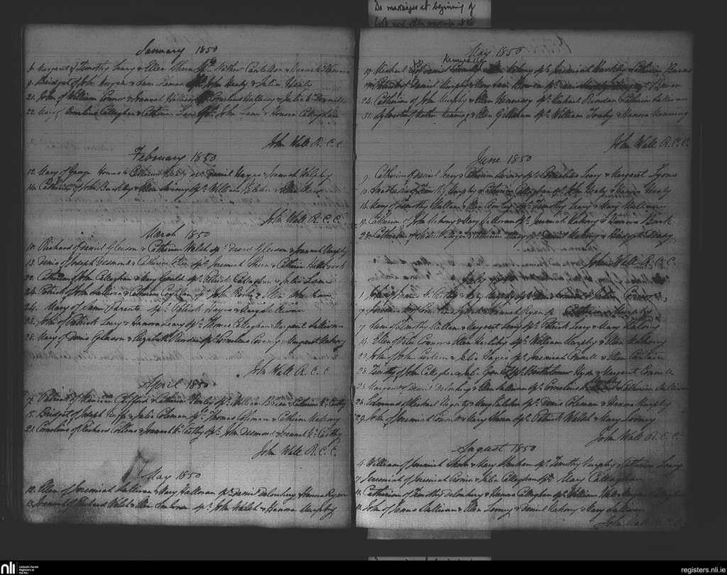 Ovens; County of Cork; Diocese of Cork and Ross. Baptisms, Jan. 1850 to Aug. 1850