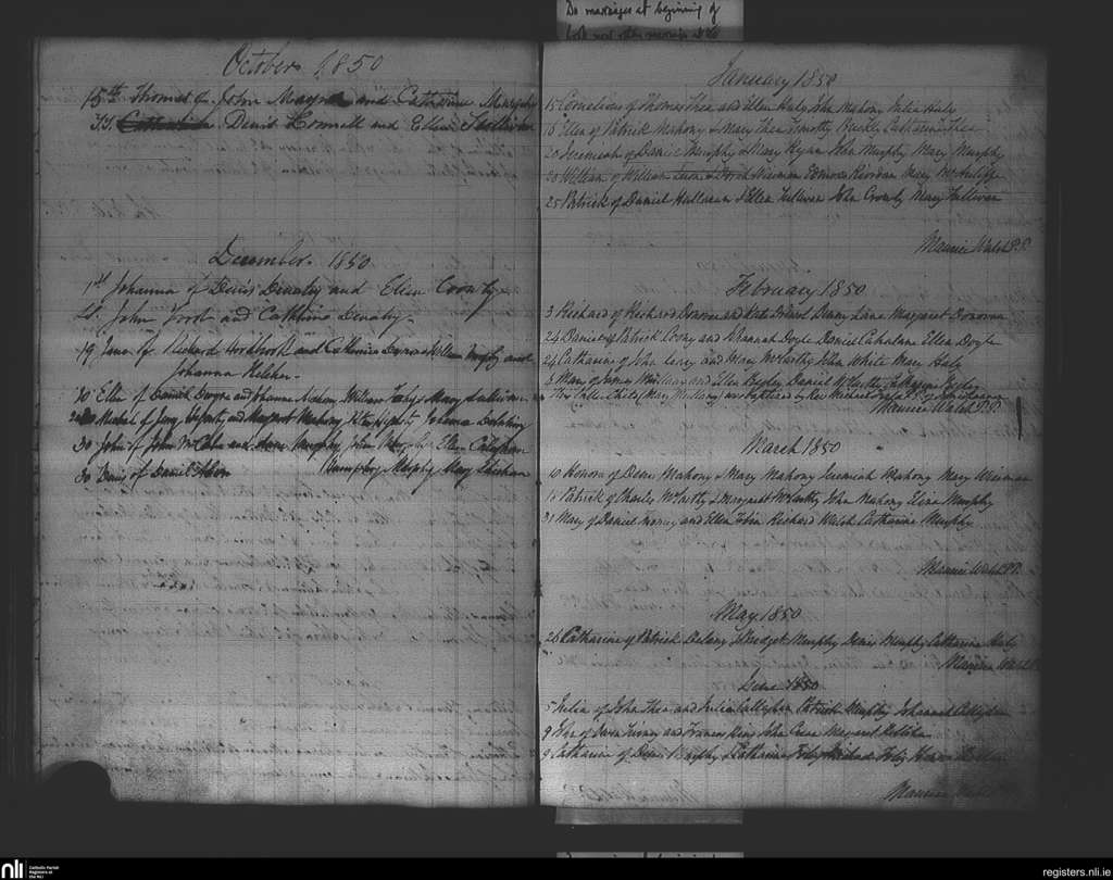 Ovens; County of Cork; Diocese of Cork and Ross. Baptisms, Jan. 1850 to Dec. 1850