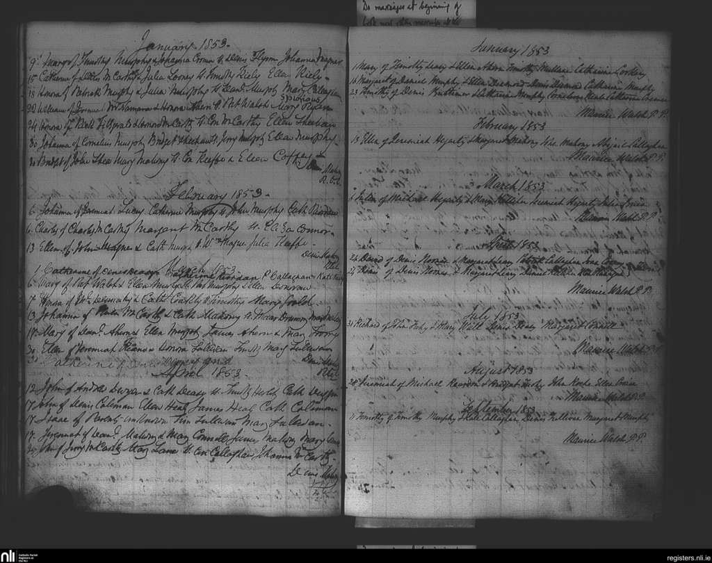 Ovens; County of Cork; Diocese of Cork and Ross. Baptisms, Jan. 1853 to Sep. 1853
