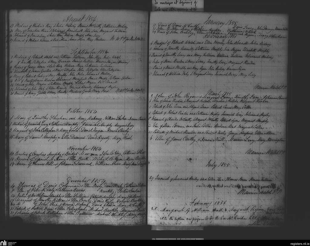 Ovens; County of Cork; Diocese of Cork and Ross. Baptisms, Aug. 1854 to July 1855