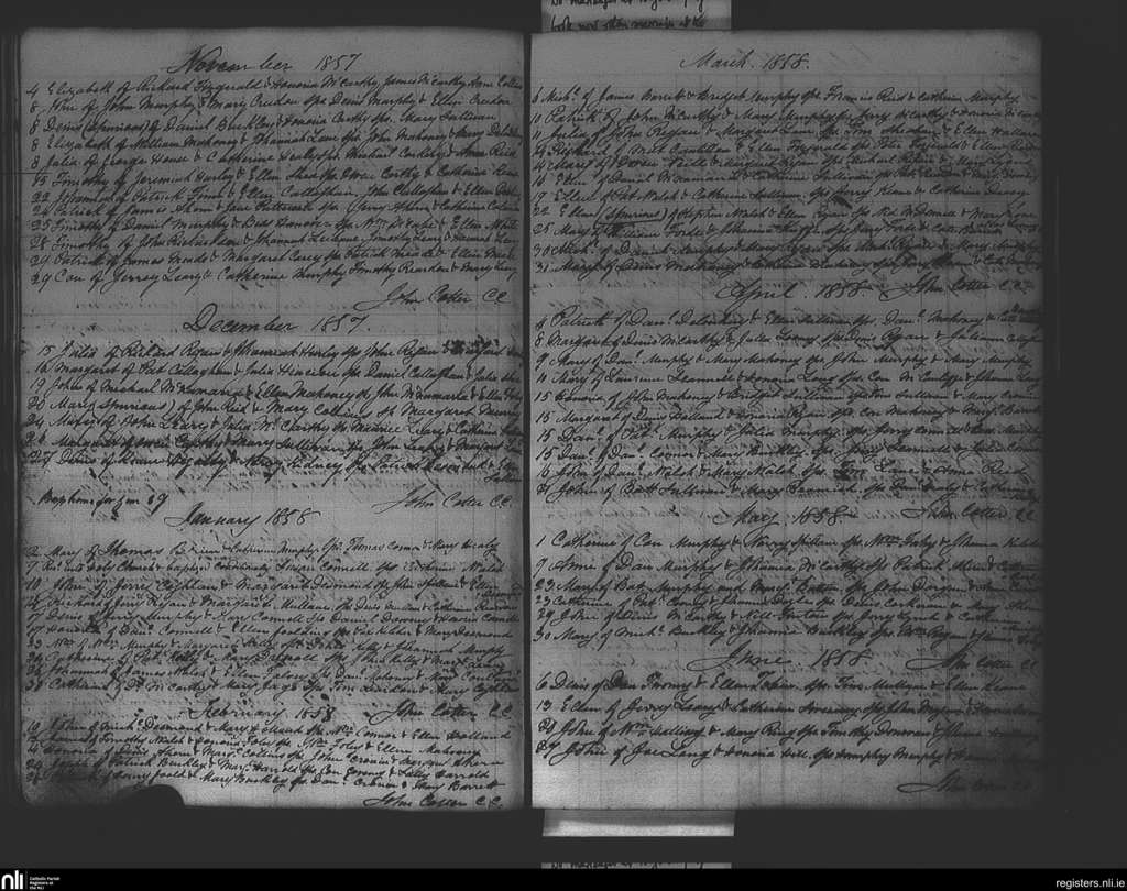 Ovens; County of Cork; Diocese of Cork and Ross. Baptisms, Nov. 1857 to June 1858