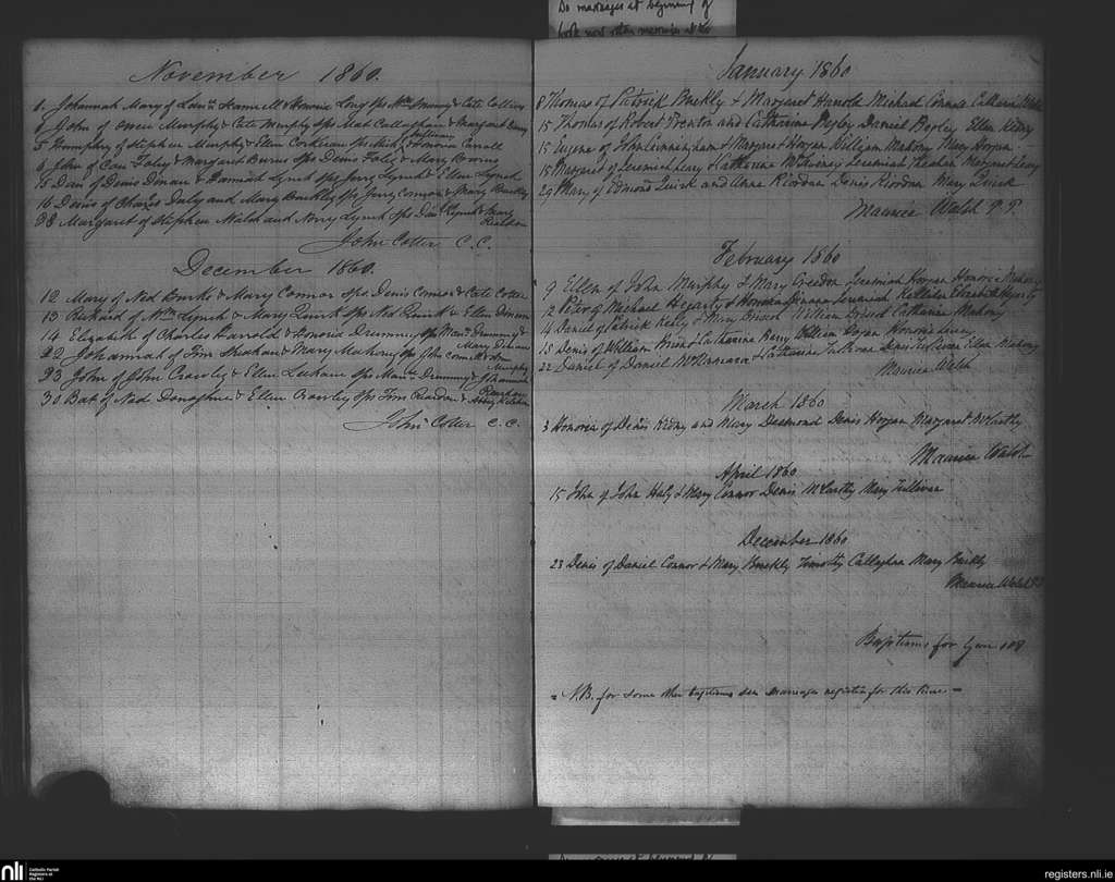 Ovens; County of Cork; Diocese of Cork and Ross. Baptisms, Jan. 1860 to Dec. 1860