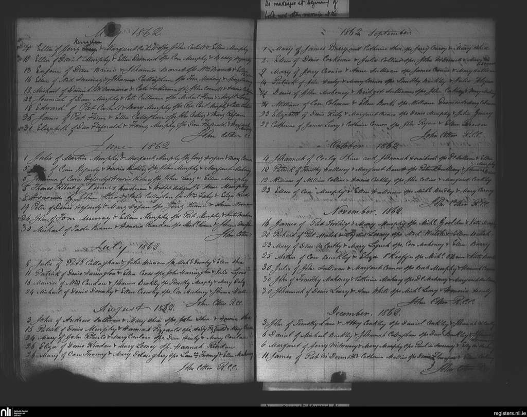 Ovens; County of Cork; Diocese of Cork and Ross. Baptisms, May 1862 to Dec. 1862