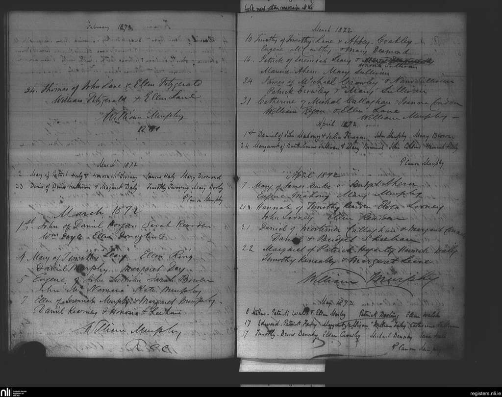 Ovens; County of Cork; Diocese of Cork and Ross. Baptisms, Mar. 1872 to May 1872