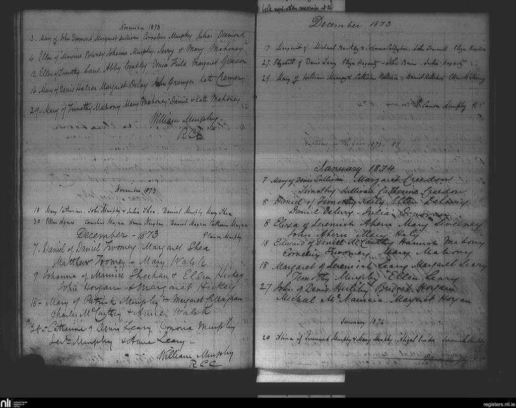 Ovens; County of Cork; Diocese of Cork and Ross. Baptisms, Nov. 1873 to Jan. 1874