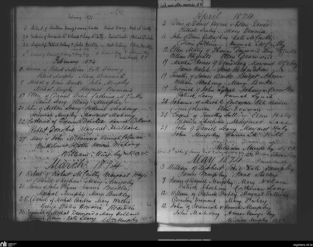 Ovens; County of Cork; Diocese of Cork and Ross. Baptisms, Feb. 1874 to May 1874