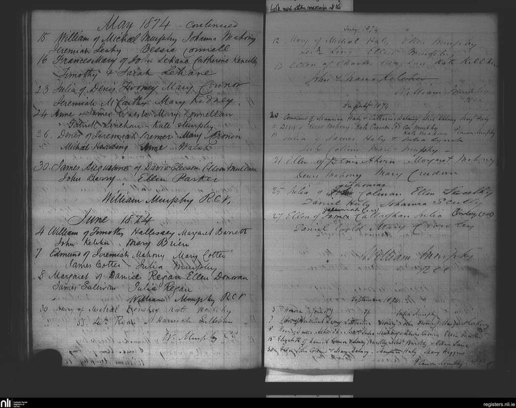 Ovens; County of Cork; Diocese of Cork and Ross. Baptisms, May 1874 to Sep. 1874