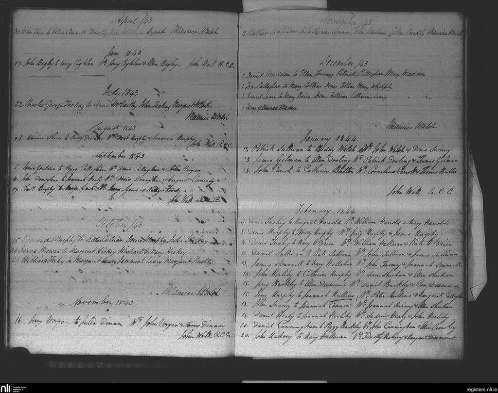 Ovens; County of Cork; Diocese of Cork and Ross. Marriages, Apr. 1843 to Feb. 1844