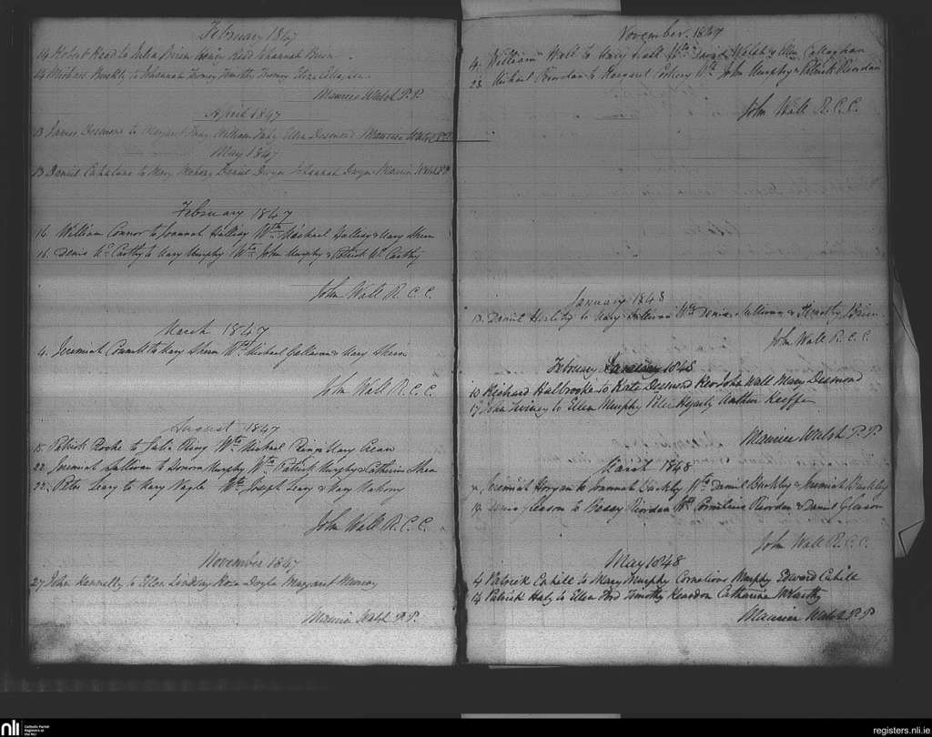 Ovens; County of Cork; Diocese of Cork and Ross. Marriages, Feb. 1847 to May 1848