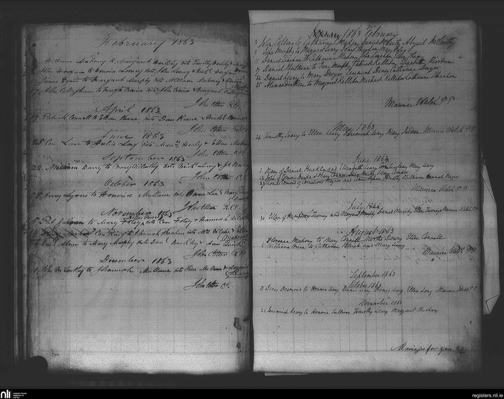 Ovens; County of Cork; Diocese of Cork and Ross. Marriages, Feb. 1863 to July 1864