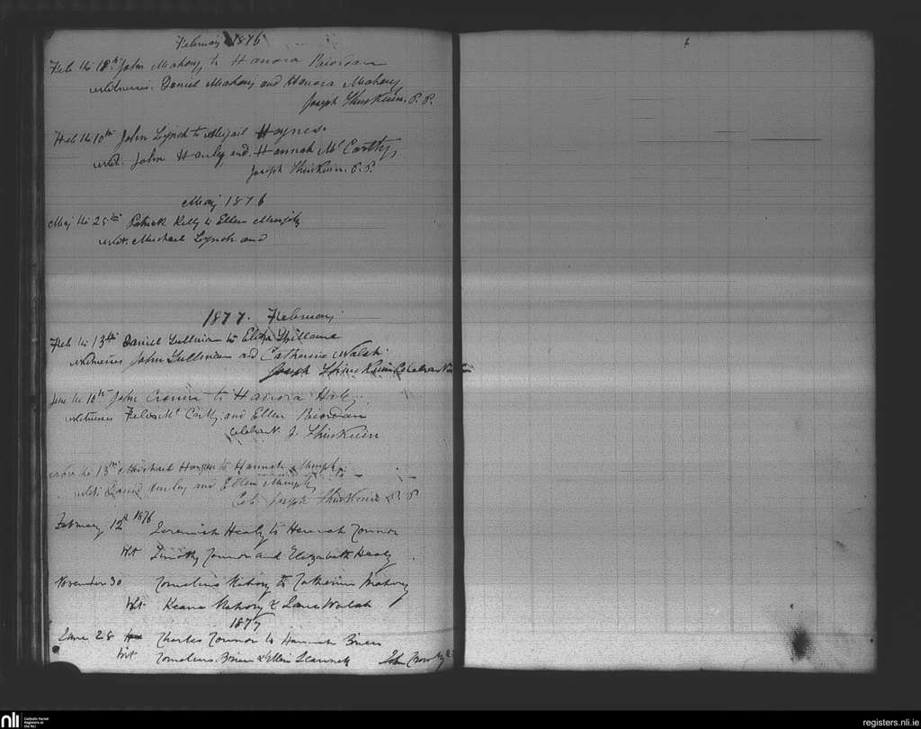 Ovens; County of Cork; Diocese of Cork and Ross. Marriages, Feb. 1876 to Nov. 1877