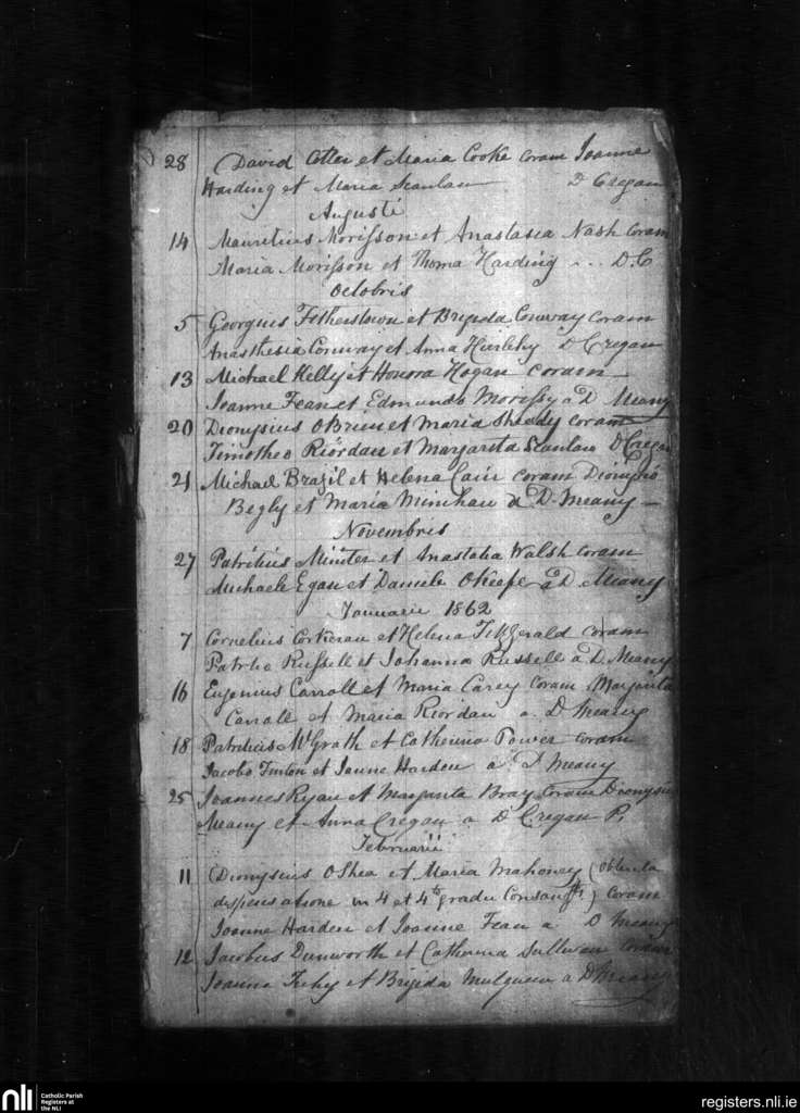 Bruree; County of Limerick; Diocese of Limerick. Marriages, July 1861 to Feb. 1862