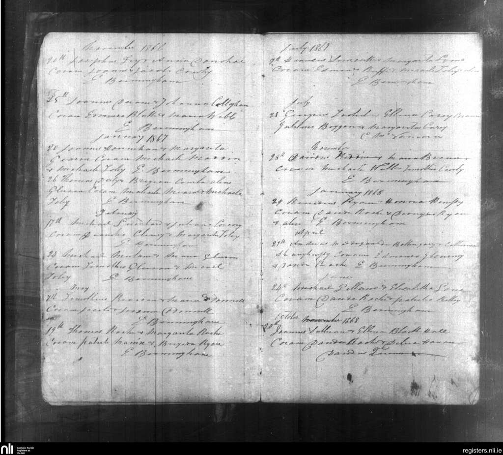 Bruree; County of Limerick; Diocese of Limerick. Marriages, Nov. 1866 to Oct. 1868