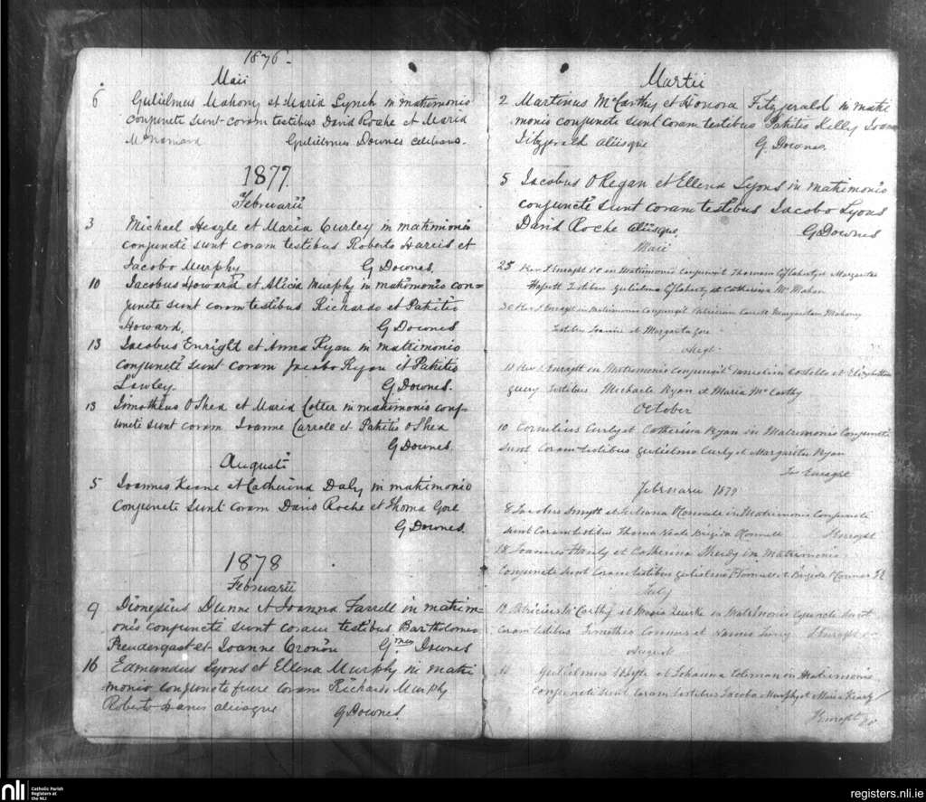 Bruree; County of Limerick; Diocese of Limerick. Marriages, May 1876 to Aug. 1879