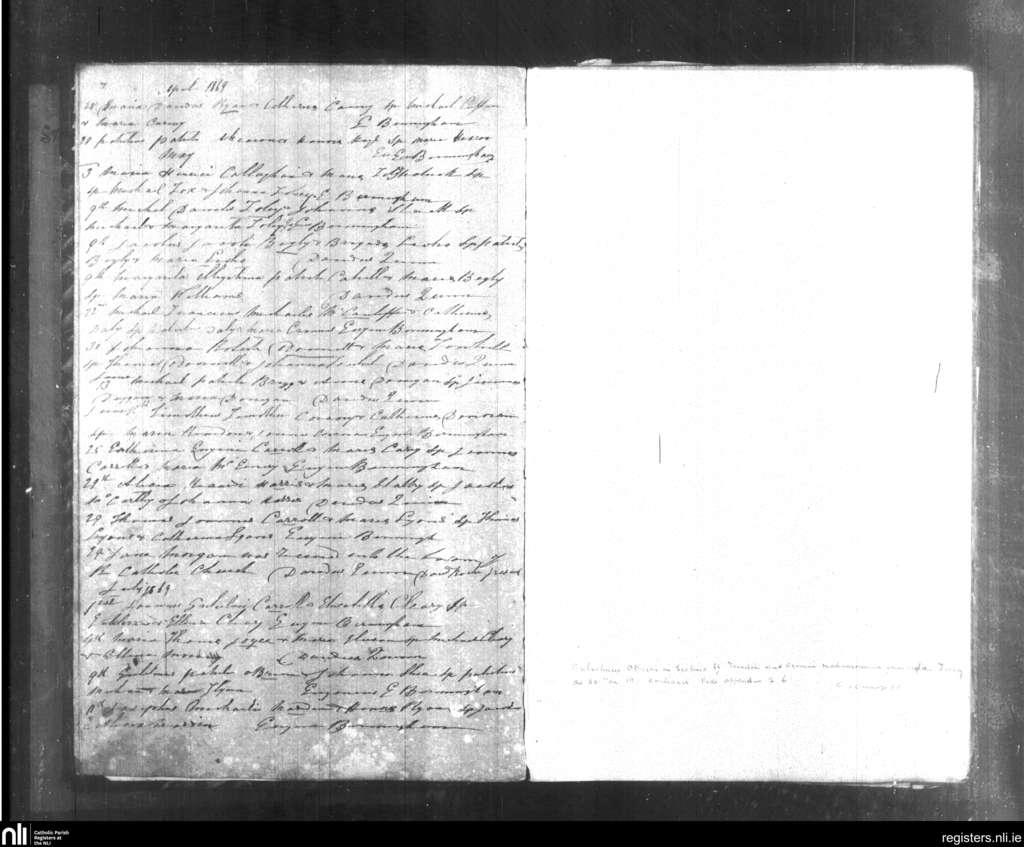 Bruree; County of Limerick; Diocese of Limerick. Baptisms, Apr. 1869 to July 1869