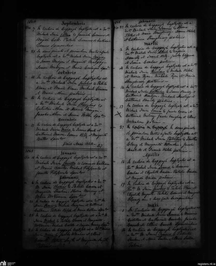 Cappagh; County of Limerick; Diocese of Limerick. Baptisms, Sep. 1864 to May 1865