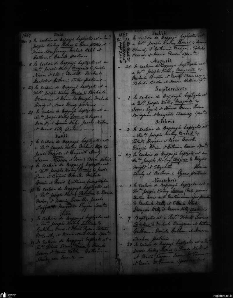 Cappagh; County of Limerick; Diocese of Limerick. Baptisms, May 1867 to Nov. 1867