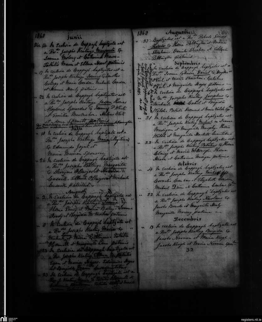 Cappagh; County of Limerick; Diocese of Limerick. Baptisms, June 1868 to Dec. 1868