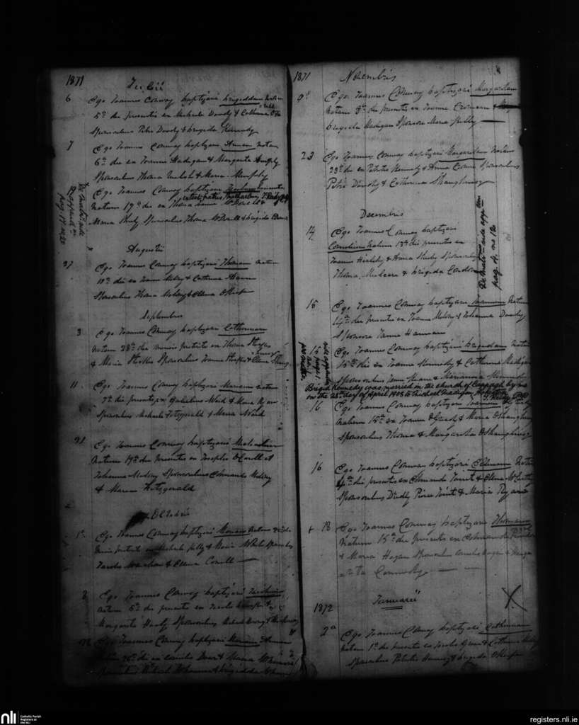 Cappagh; County of Limerick; Diocese of Limerick. Baptisms, July 1871 to Jan. 1872