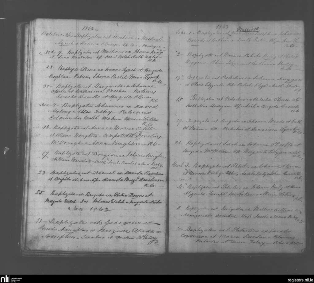 Kilcornan; County of Limerick; Diocese of Limerick. Baptisms, Oct. 1862 to Mar. 1863