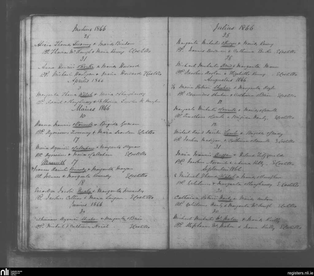Kilcornan; County of Limerick; Diocese of Limerick. Marriages, Mar. 1866 to Sep. 1866