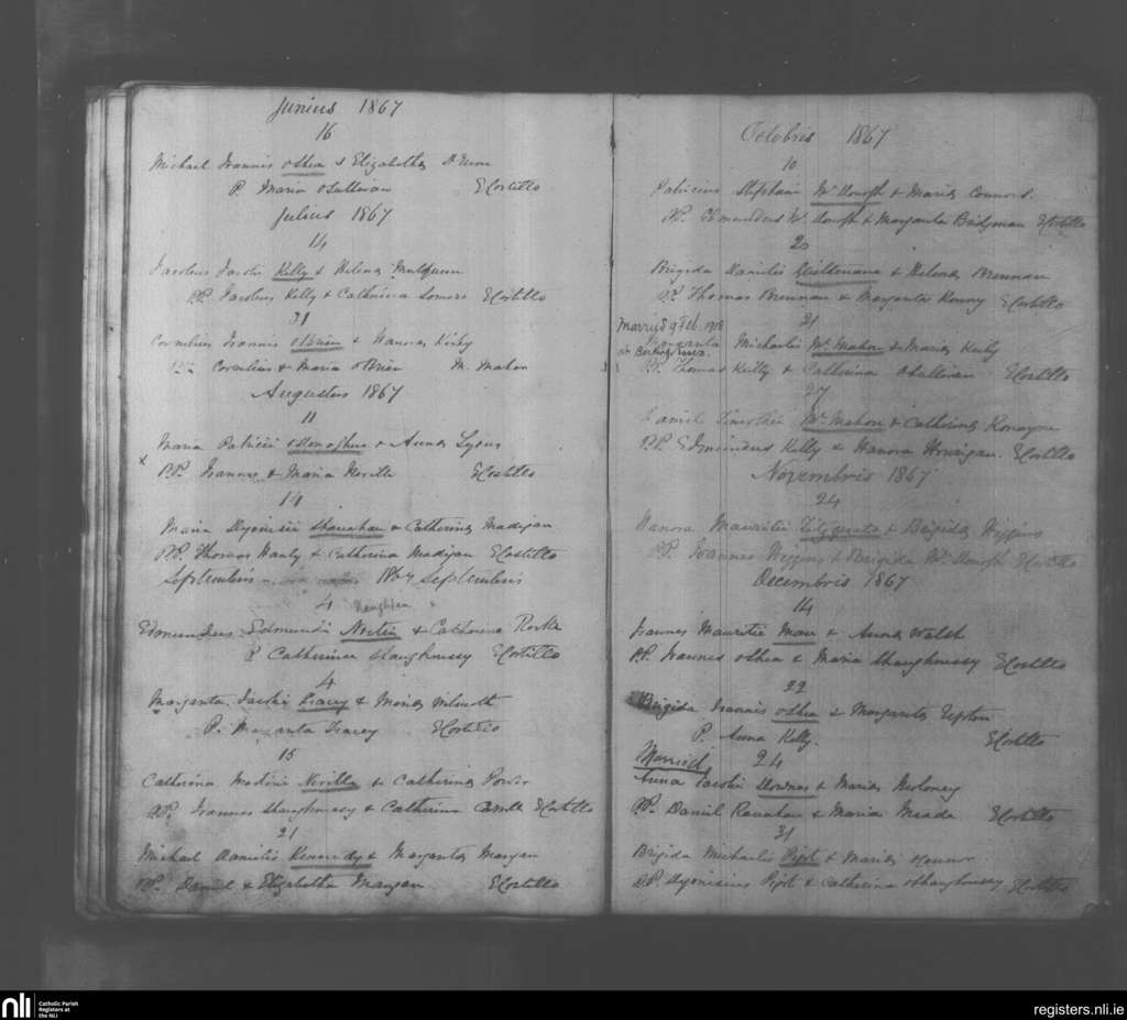 Kilcornan; County of Limerick; Diocese of Limerick. Marriages, June 1867 to Dec. 1867