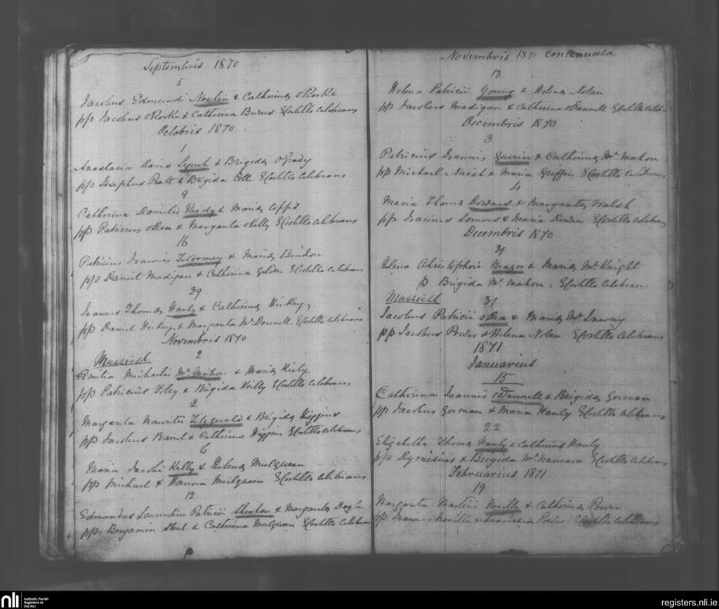 Kilcornan; County of Limerick; Diocese of Limerick. Marriages, Sep. 1870 to Feb. 1871