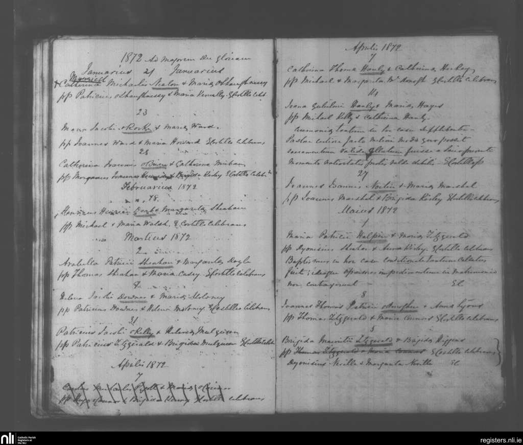 Kilcornan; County of Limerick; Diocese of Limerick. Marriages, Jan. 1872 to May 1872