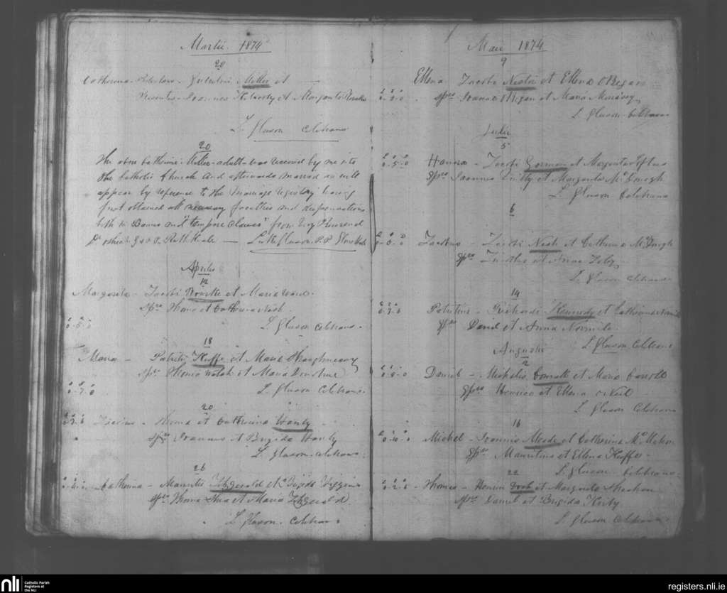 Kilcornan; County of Limerick; Diocese of Limerick. Marriages, Mar. 1874 to Aug. 1874