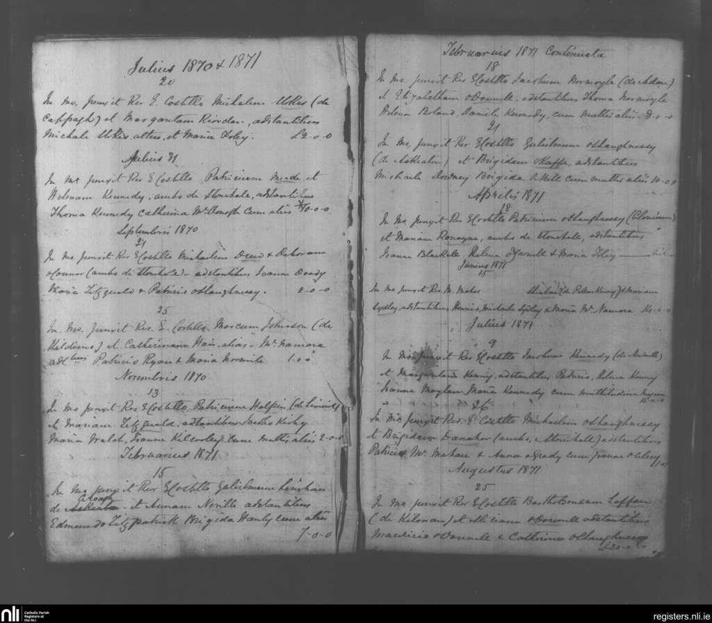 Kilcornan; County of Limerick; Diocese of Limerick. Marriages, July 1870 to Aug. 1871