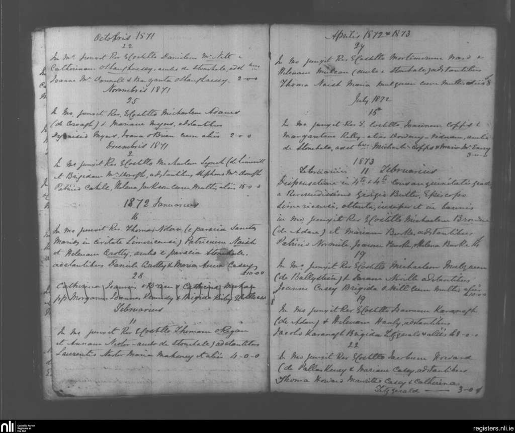 Kilcornan; County of Limerick; Diocese of Limerick. Marriages, Oct. 1871 to Feb. 1873