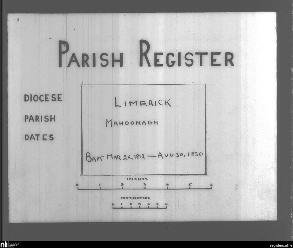 Mahoonagh; County of Limerick; Diocese of Limerick. Baptisms