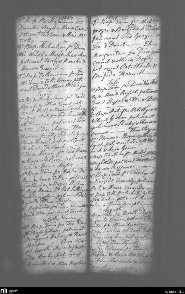 Mahoonagh; County of Limerick; Diocese of Limerick. Baptisms, May 1824 to Aug. 1824