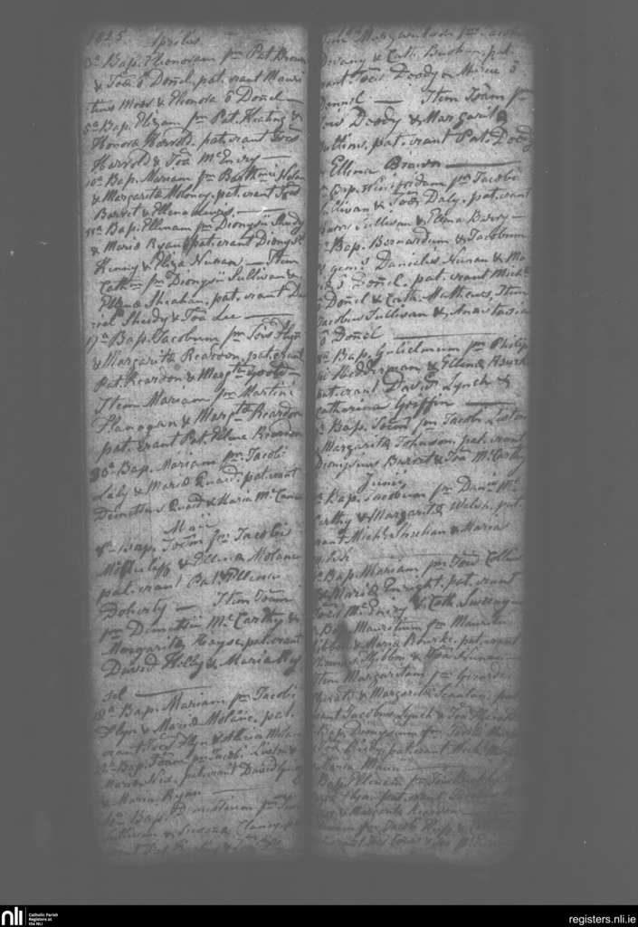 Mahoonagh; County of Limerick; Diocese of Limerick. Baptisms, Apr. 1825 to June 1825