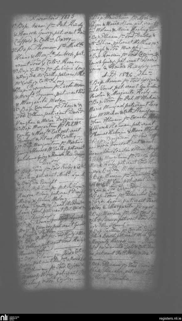 Mahoonagh; County of Limerick; Diocese of Limerick. Baptisms, Nov. 1825 to Jan. 1826