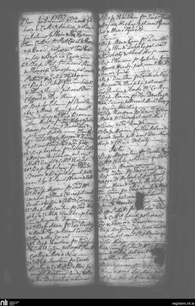 Mahoonagh; County of Limerick; Diocese of Limerick. Baptisms, May 1827 to July 1827