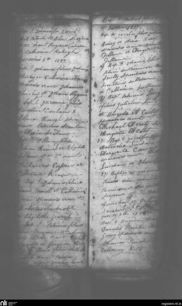Mahoonagh; County of Limerick; Diocese of Limerick. Baptisms, Dec. 1833 to Jan. 1834