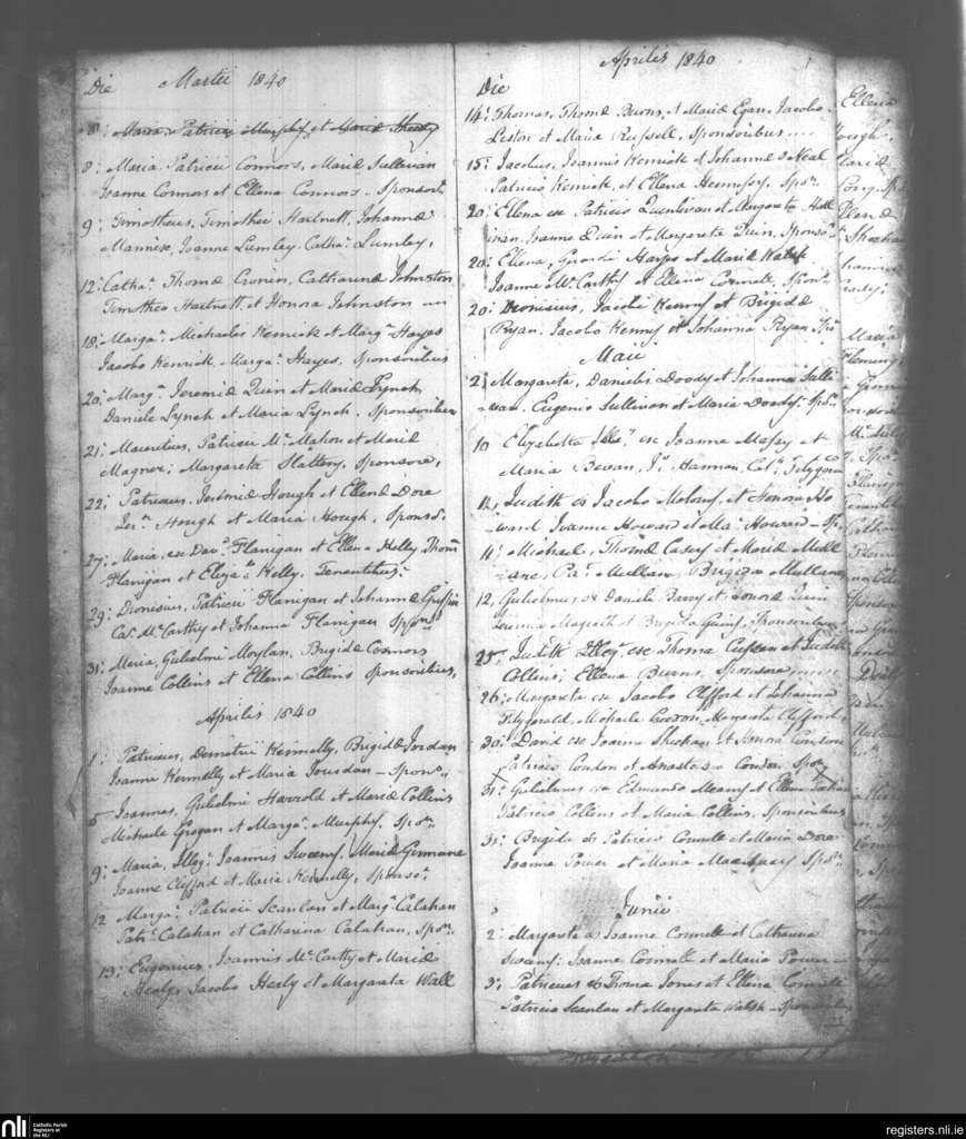 Mahoonagh; County of Limerick; Diocese of Limerick. Baptisms, Mar. 1840 to June 1840